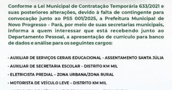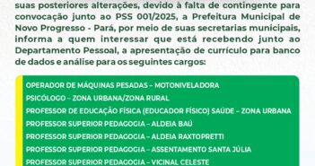 A PREFEITURA MUNICIPAL DE NOVO PROGRESSO (PMNP), ATRAVÉS DA SECRETARIA MUNICIPAL DE ADMINISTRAÇÃO E PLANEJAMENTO,…