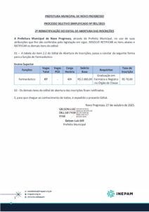 2ª RERRATIFICAÇÃO DO EDITAL – NOVO PROGRESSO