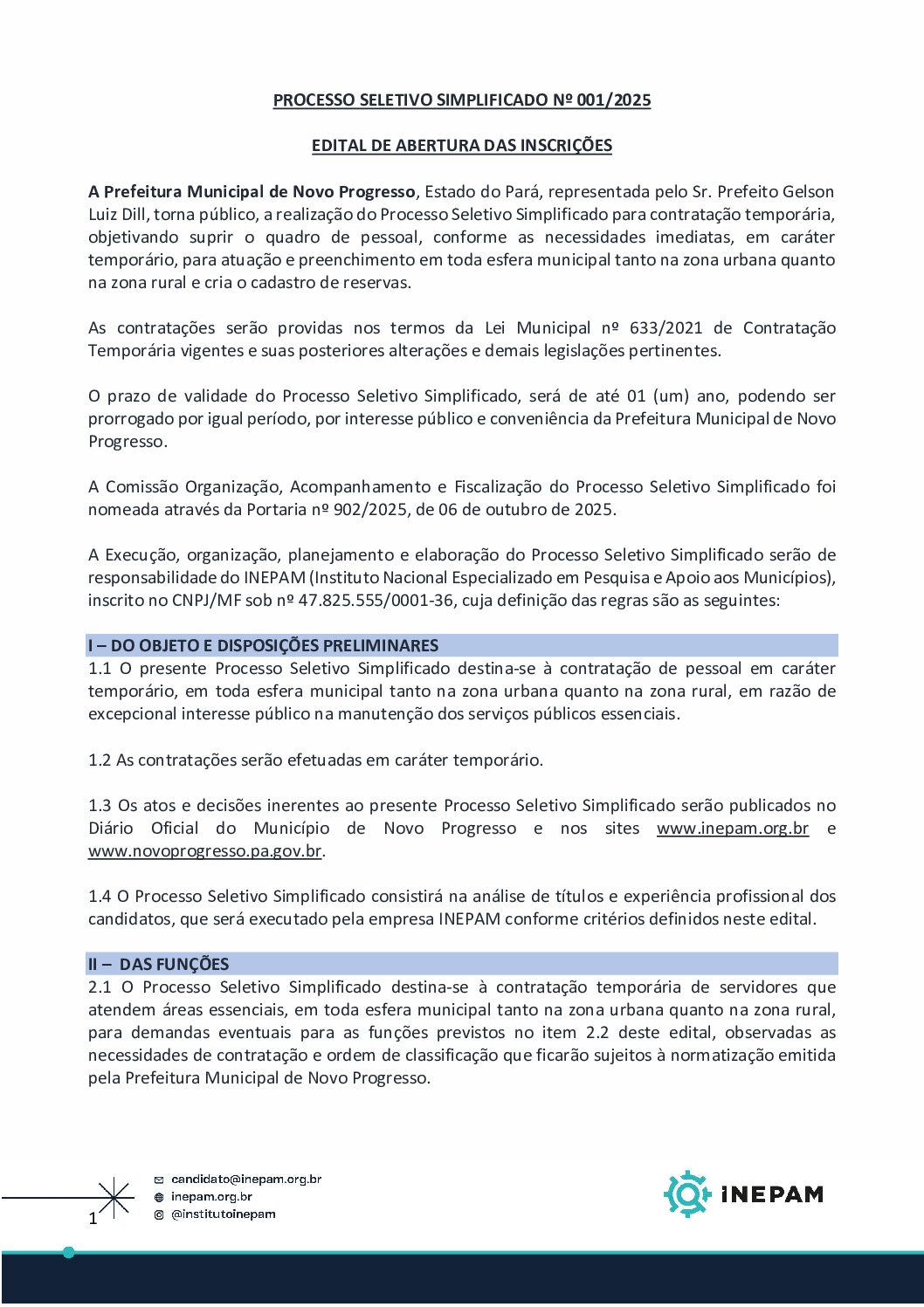 EDITAL PROCESSO SELETIVO SIMPLIFICADO – NOVO PROGRESSO – PUBLICAR