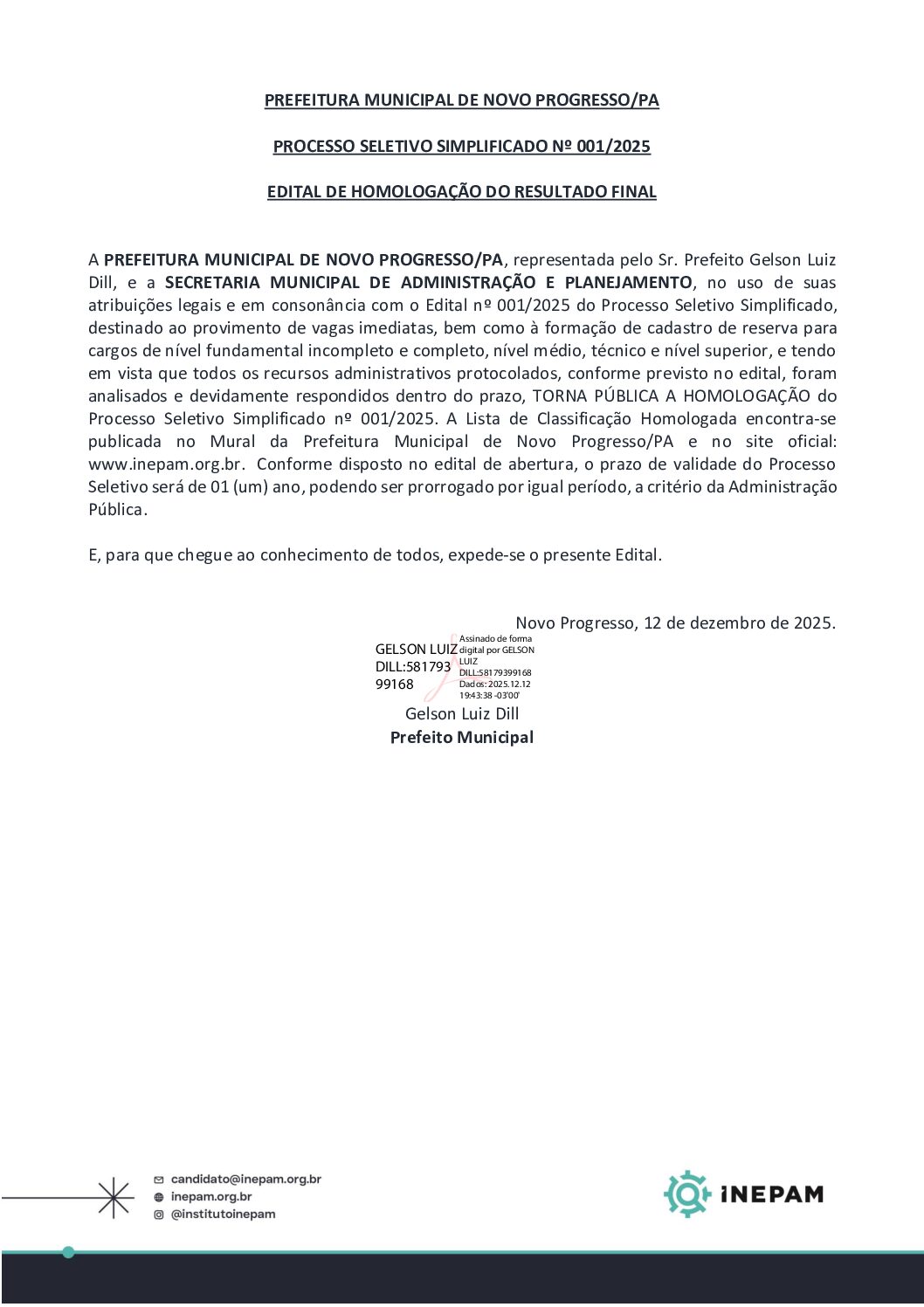 HOMOLOGAÇÃO NOVO PROGRESSO